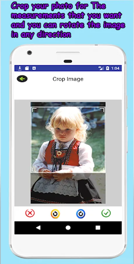 2) Crop your photo for The measurements that you want and you can rotate the image in any direction, you can control the brightness of the light pixel effect, with the possibility to change the color of pixel effect