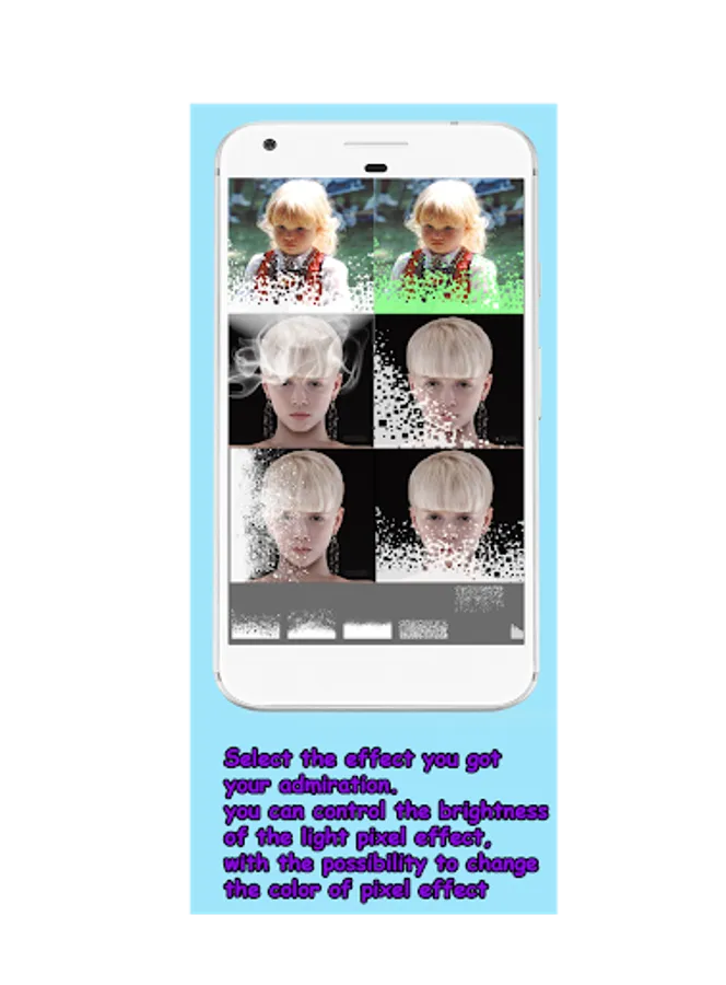 I- Pixel Effect Photo Editor 2017 The most amazing app to create, convert your photo into a Pixel photo Effect and has variety of bleeding pixels in various styles. It applies some magic effects on your photos to make it more beautiful and realistic.