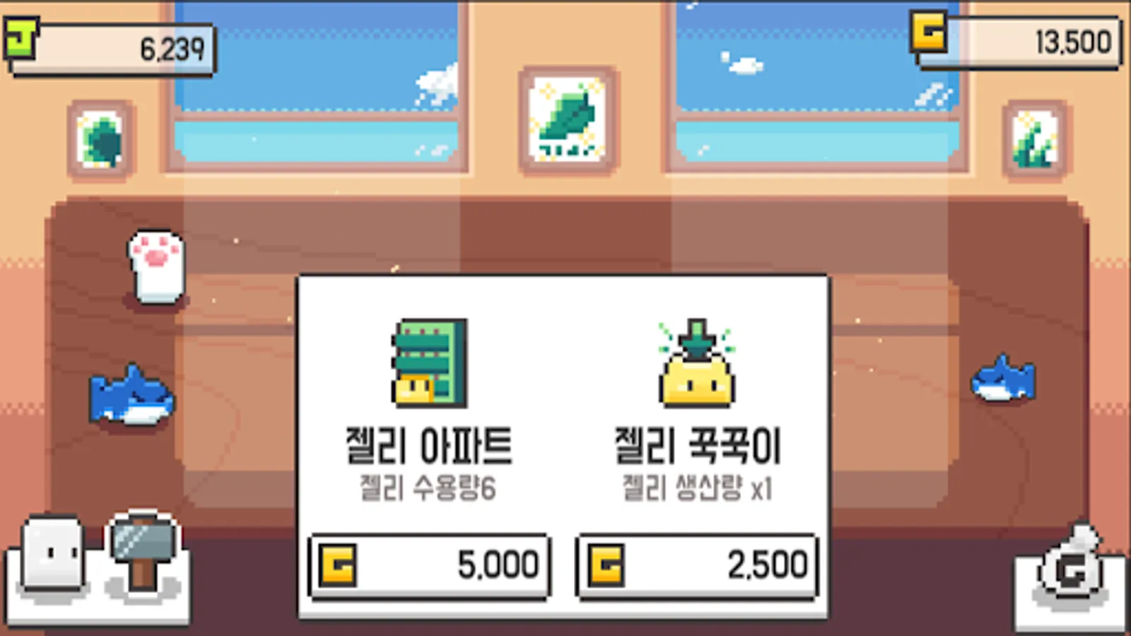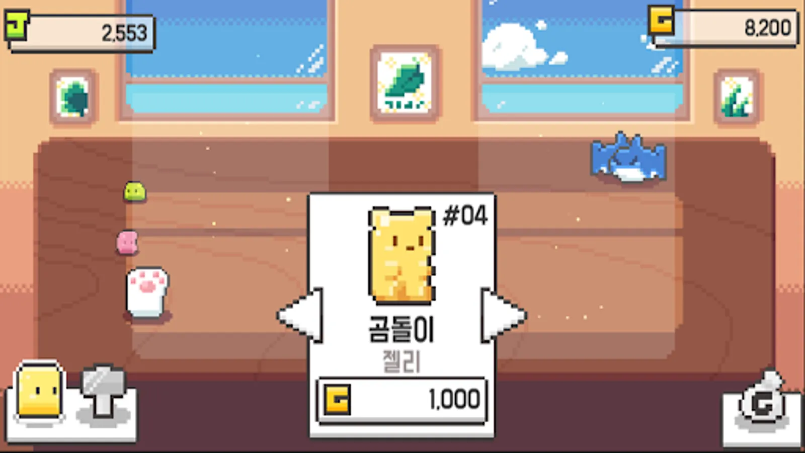 You can purchase jellies, acquire gold and gelatin goods through the jellies, and purchase higher grade jellies to further upgrade the goods you earn.