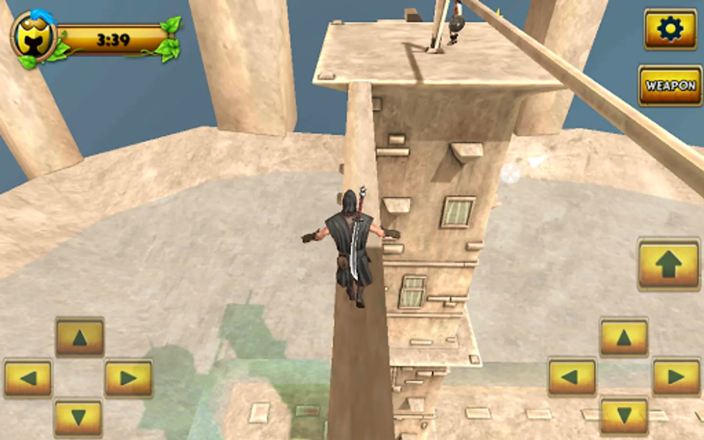 In this violent 3D action game you play as angry green ninja samurai. This epic fun game contains 12 levels. Your aim is to collect all stars and fruit, randomly placed on towers. Mortal enemy warriors will try to crush you with their strong tiger armor. You will have to chop, kick, punch, slash through them like a hitman or just run. You have gone through learning of kung fu, fighting skills, climbing from your evil sensei. You are armed with lethal sword blade ( katana ), shuriken and other weapons. Finish all levels, revenge all your enemies and become a legend. Climb to top of the towers and jump down to water to finish your fight creed assassination. You can also pick stealth approach and use your infiltration, sneak, spy skills. Unaware from your mercenary enemies you can finish the level like a japanese rising shadow hunter without of need to gear up and crime combat.