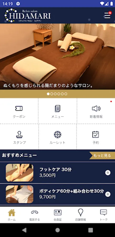 Through the app, you can receive new information and deals of "Relax Salon HIDAMARI" in real time.