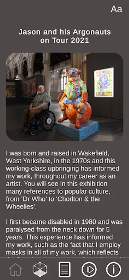 The Jason & his Argonauts on Tour app is packed with information about the new Jason Wilsher-Mill 2021 exhibit at The People's History Museum in Manchester, England. Find information about Jason Wilsher-Mill's body of work, including some of his new exhibits - Changing Places and the PHM Argonaut. Jason & his Argonauts on Tour also features augmented reality, showcasing artwork from disabled communities across the country.