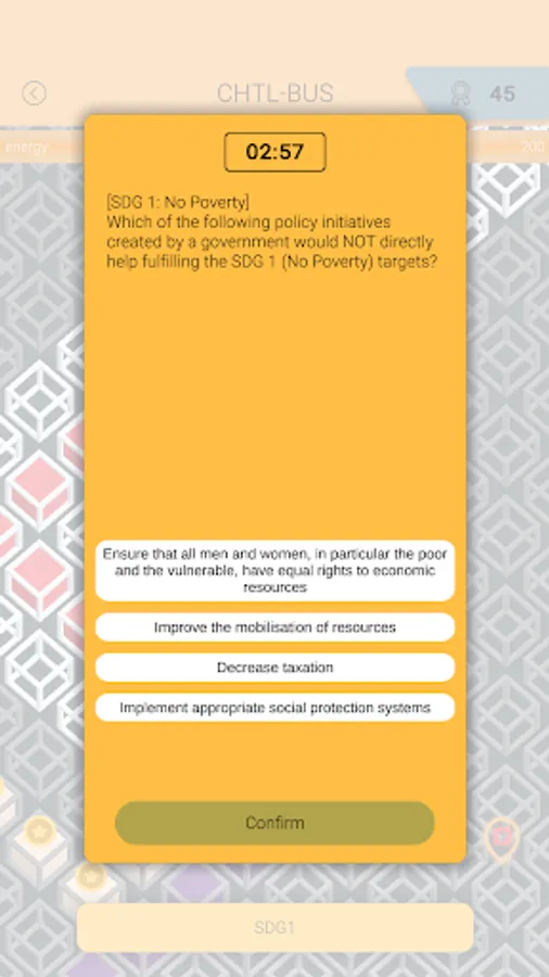 • SDGs questions are grouped by their relevant goals for strategised gameplay or pinpointed practices