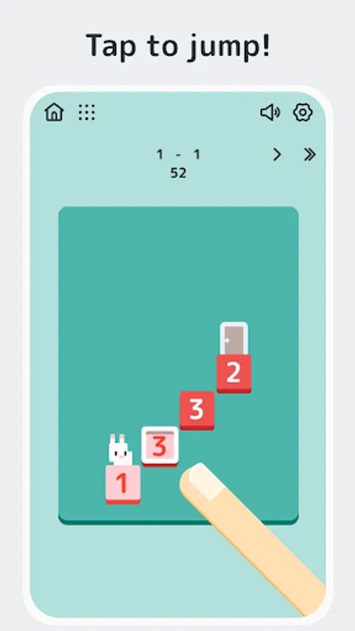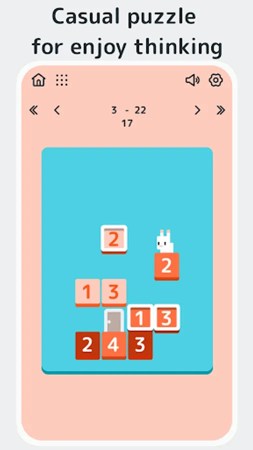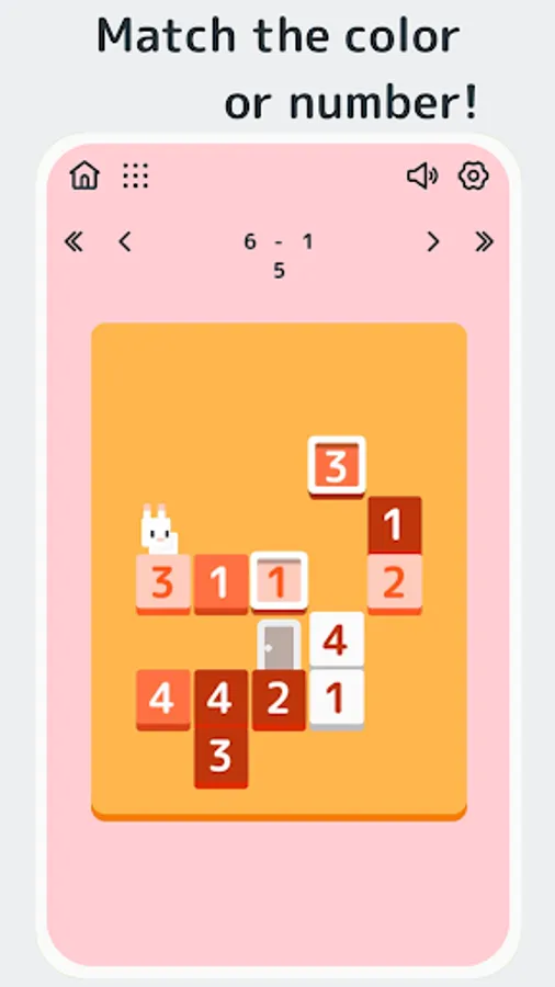 Jump the white rabbit to blocks which match the color or number, and lead it to the goal!