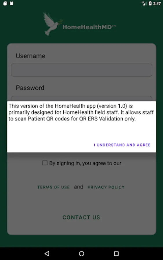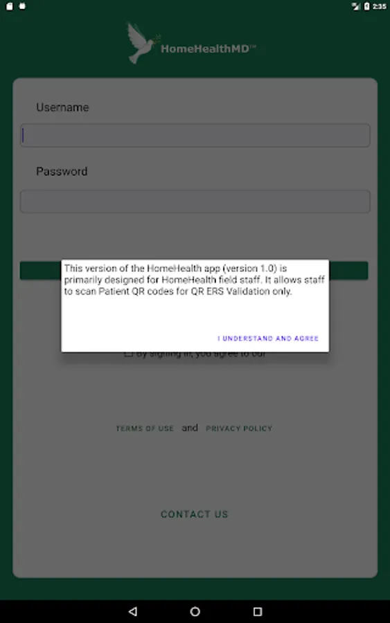 The HomeHealthMD app allows staff to do their ERS validation for notes by making use of QR code scanning. Upon a successful scan, if user is authentication is successful the ERS validation is saved. It will later be attached to a note created with same visit date.