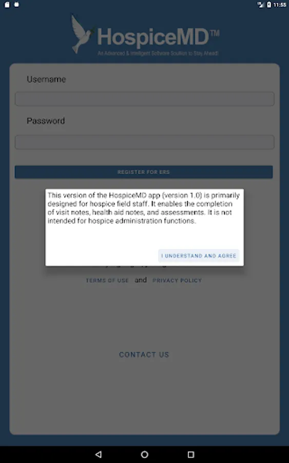 The HospiceMD app allows staff to do their ERS validation for notes by making use of QR code scanning. Upon a successful scan, if user is authentication is successful the ERS validation is saved. It will later be attached to a note created with same visit date.