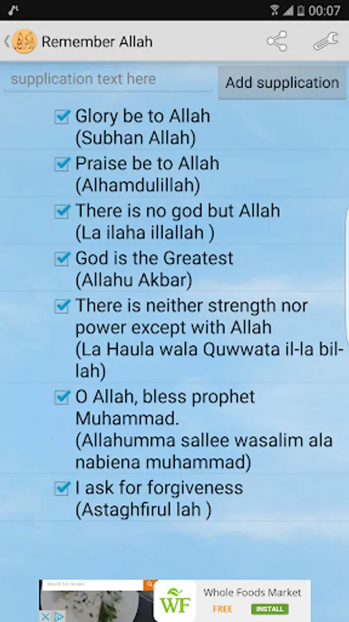The purpose of this app is to remind you to remember Allah by automatically reminding you throughout the day to say athkar like subhan Allah, Alhamdulillah, Allah Akbar, and LA Illah Illa Allah.