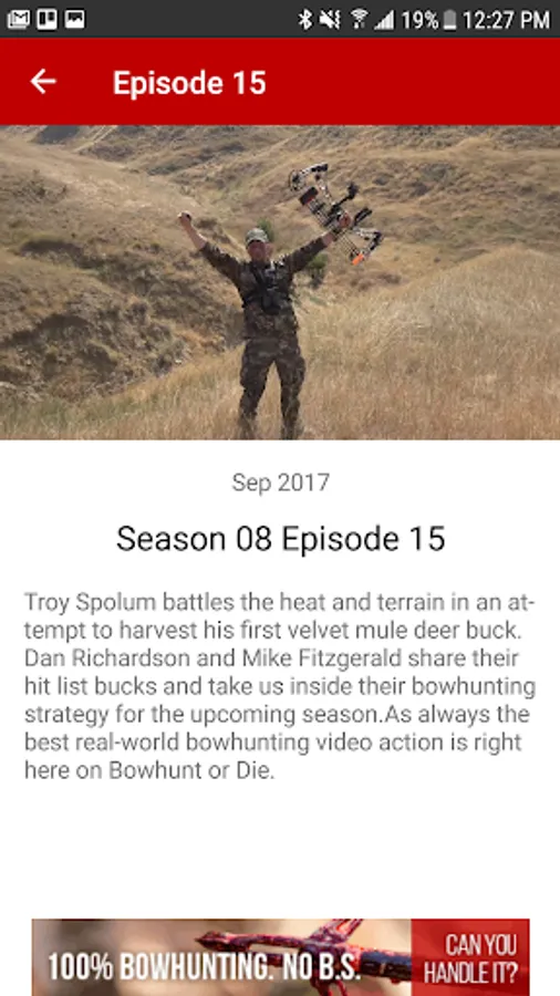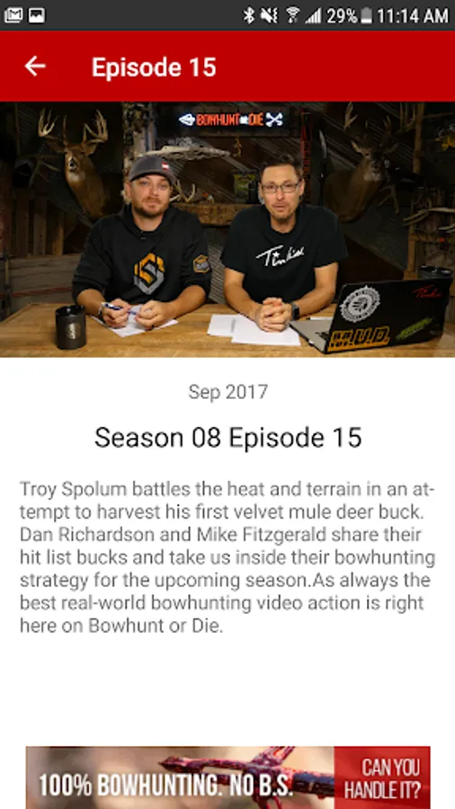 The best way to watch your favorite bowhunting show! Bowhunt or Die® is the #1 bowhunting-only show made by serious bowhunters. Join our team on their bowhunting journey throughout their season. We bring you the highest quality bow hunts from around the U.S. 100% fair-chase bowhunting at it's best. New episodes every Friday from September through January.