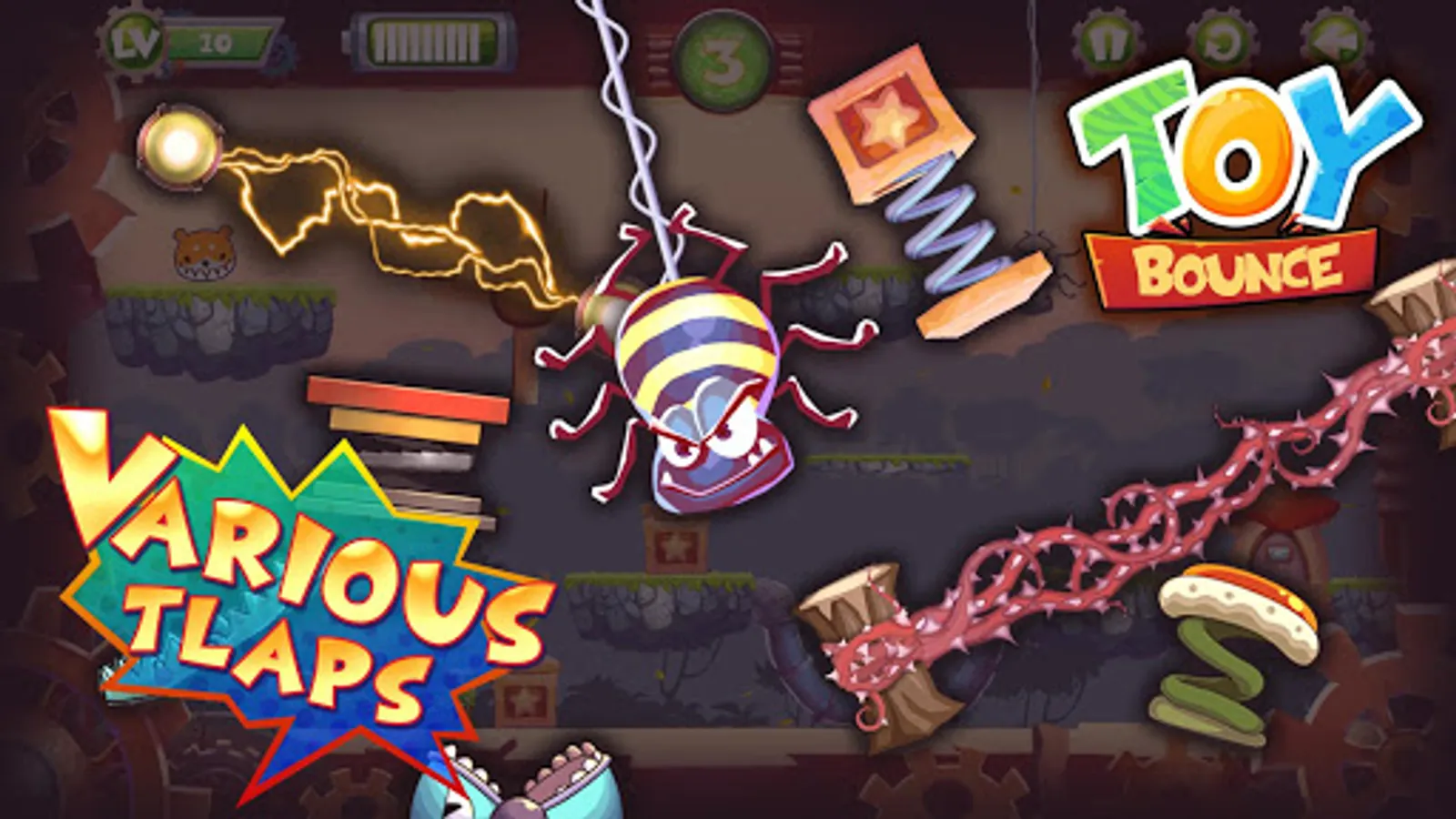 Spider: The spider that moves up and down hanging on the cobweb destroys the toyball with its poison.