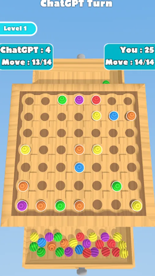 Swipe the balls to the right place and merge them as much as possible. In order for the balls to merge, the same color balls must come side by side or under each other. If you merge more balls than your opponent, you will win the game.