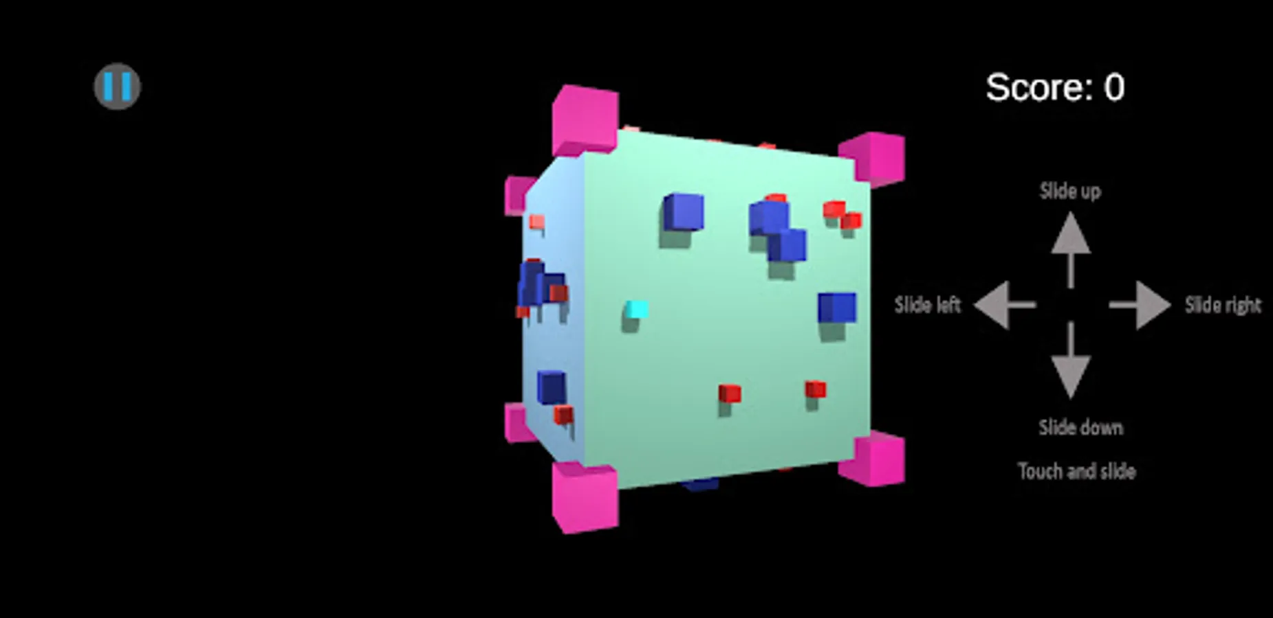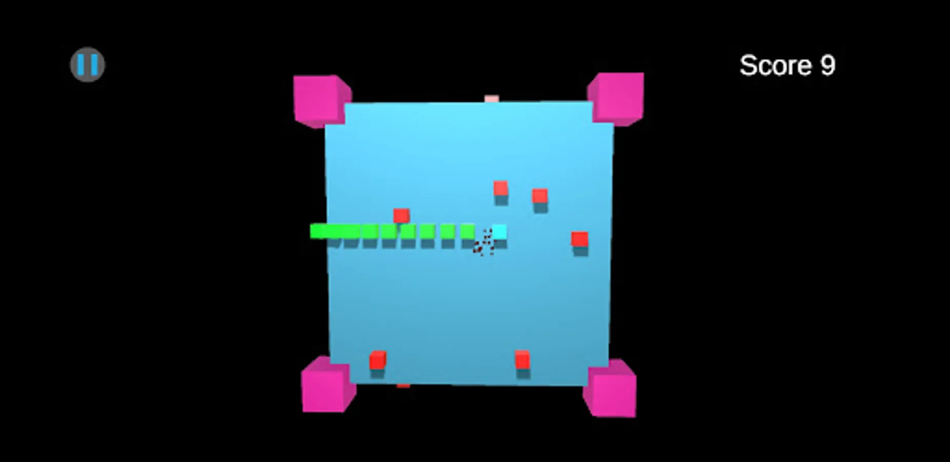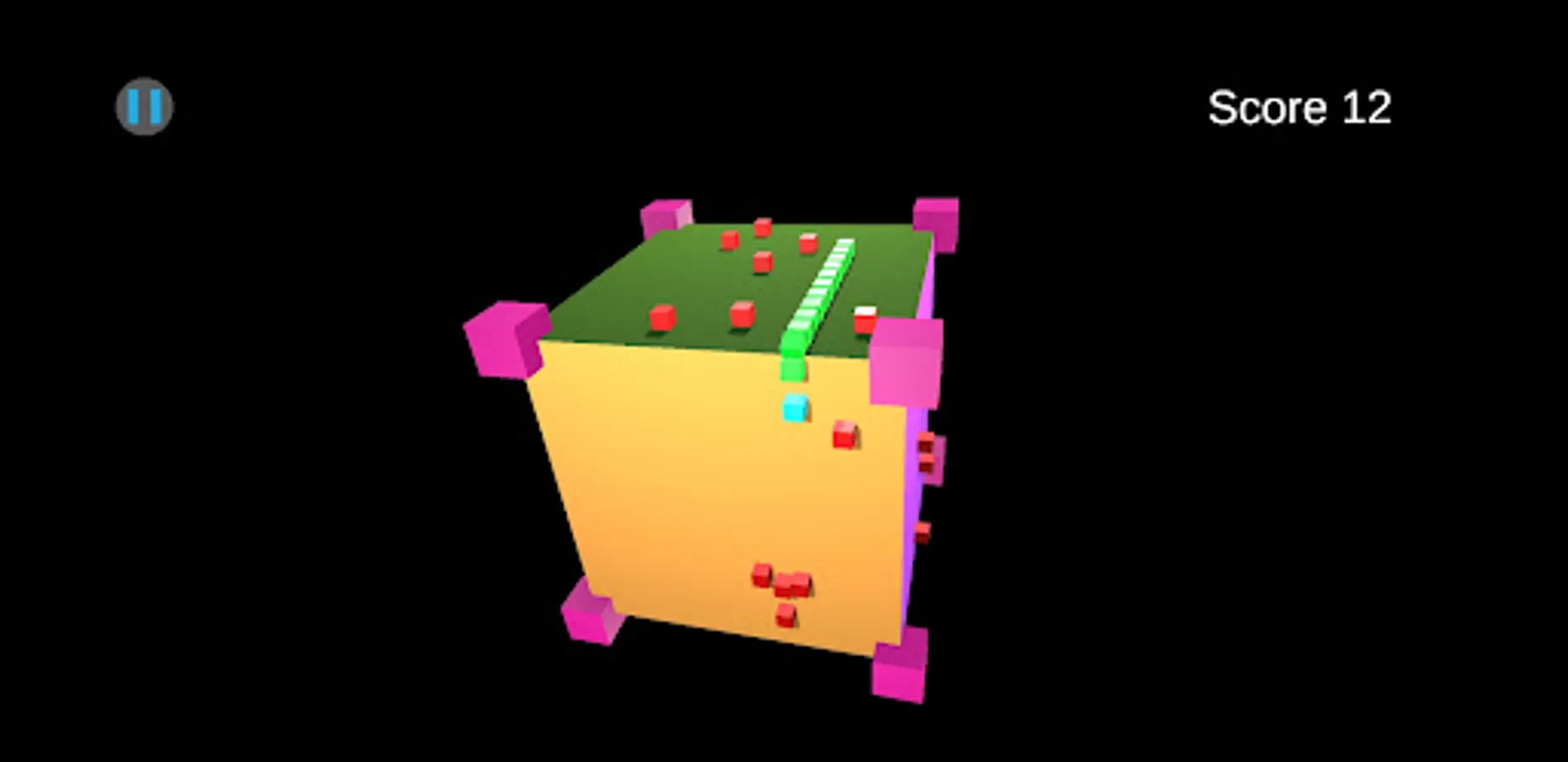 This is a Free with ads 3D version of the snake game where the snake moves on the 3D cube surfaces eating its prey without hitting the obstacles or itself. With each eat, the snake grows.