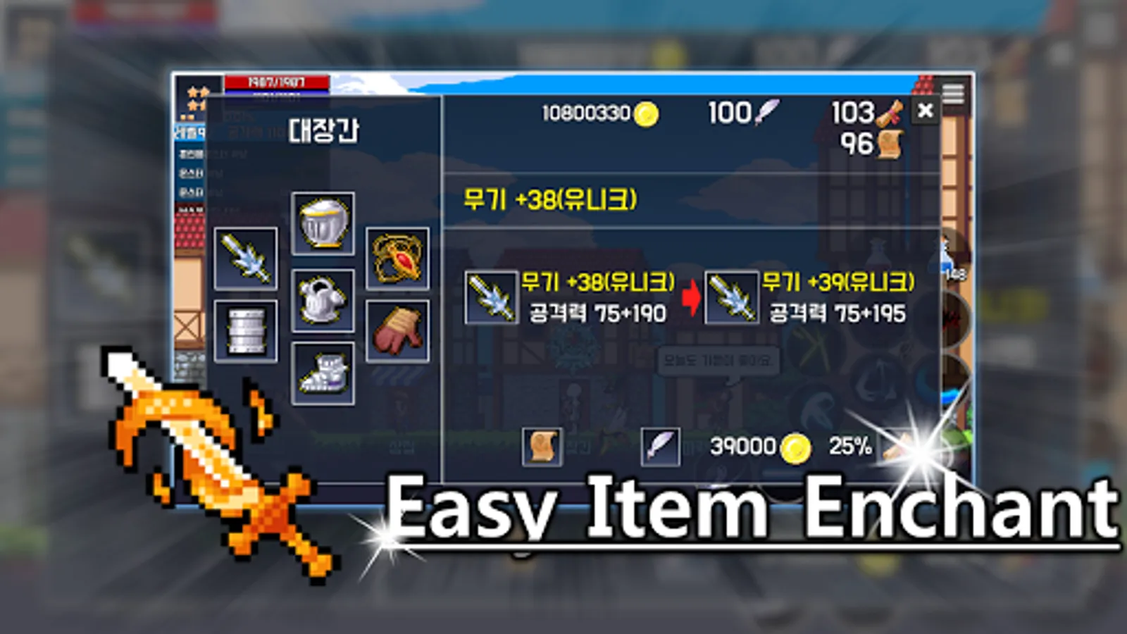 ▶ Easy and simple equipment enhancement with one button