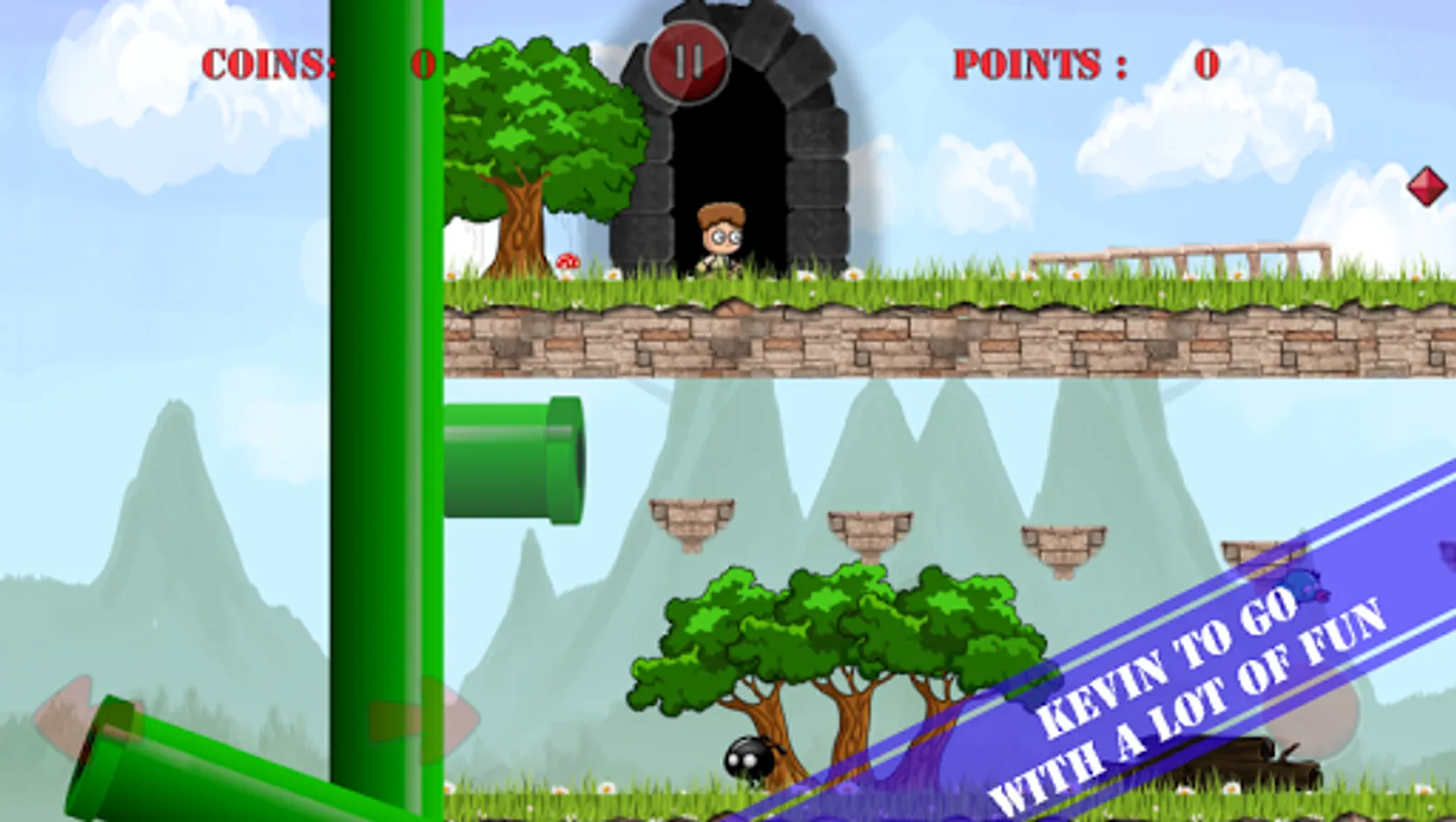 Kevin to go is a retro classic platformer game, wich is getting better and better with every update. So you can look forward to the new world's and levels.