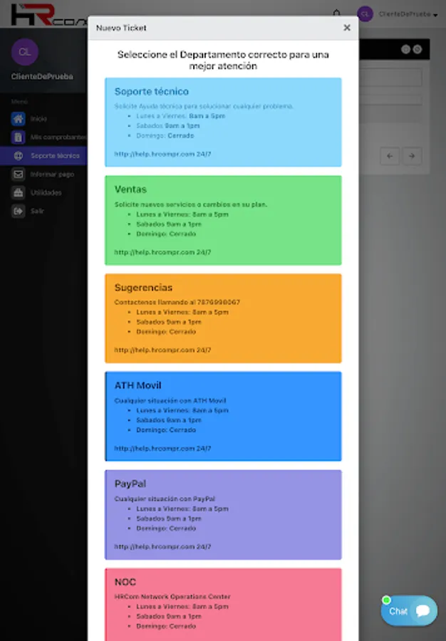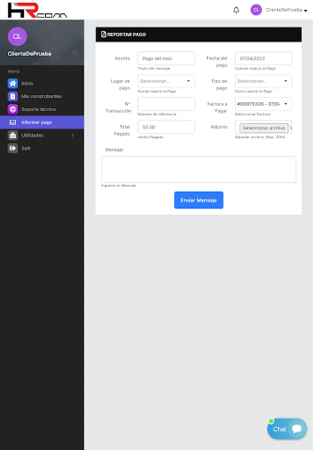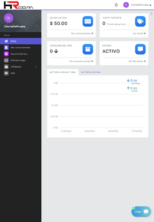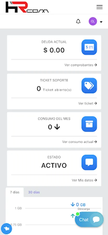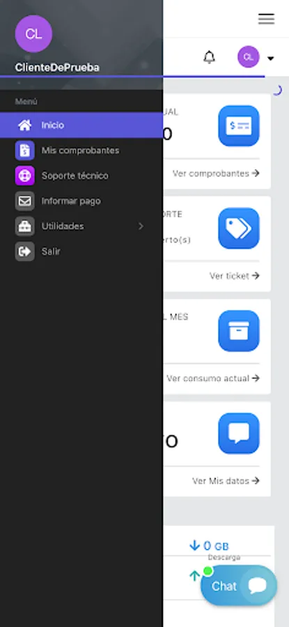 Here you can review your payment receipts, download your invoices, report network problems, view your internet consumption, open a support ticket, among other functions.