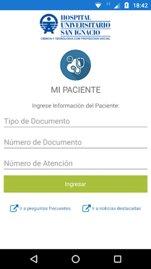 With this application, patients in the emergency department of the Hospital Universitario San Ignacio can give access to a family member or companion to see in real time the patient's condition while in the emergency department.