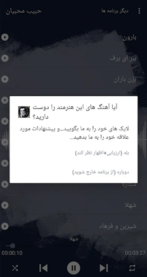 Selections from the best songs of Habib Mohebian, new and old, for free and without the need for the Internet