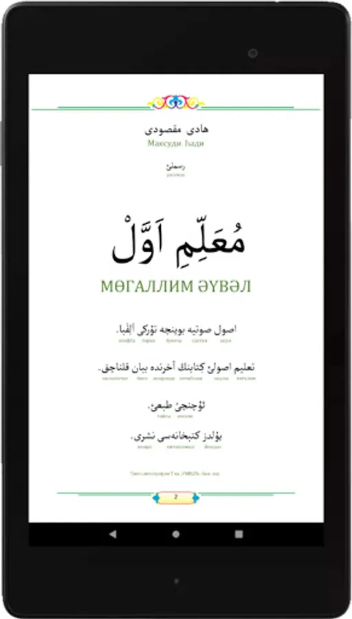 In this book we offer you the alphabet of A. Maksudi "Muallim auval". For convenience, transcription in Cyrillic has been brought under the words