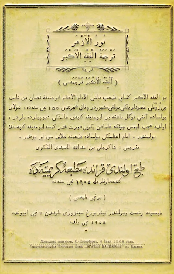 Abu Hanifah an-Nu'man ibn Thabit al-Kufi (5 September 699 - 18 June 767 AD) - Islamic theologian, jurist and Muhadith, founder and eponym of the Hanafi Madhab. language books - old Tatar based arabitsy!