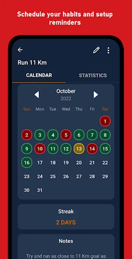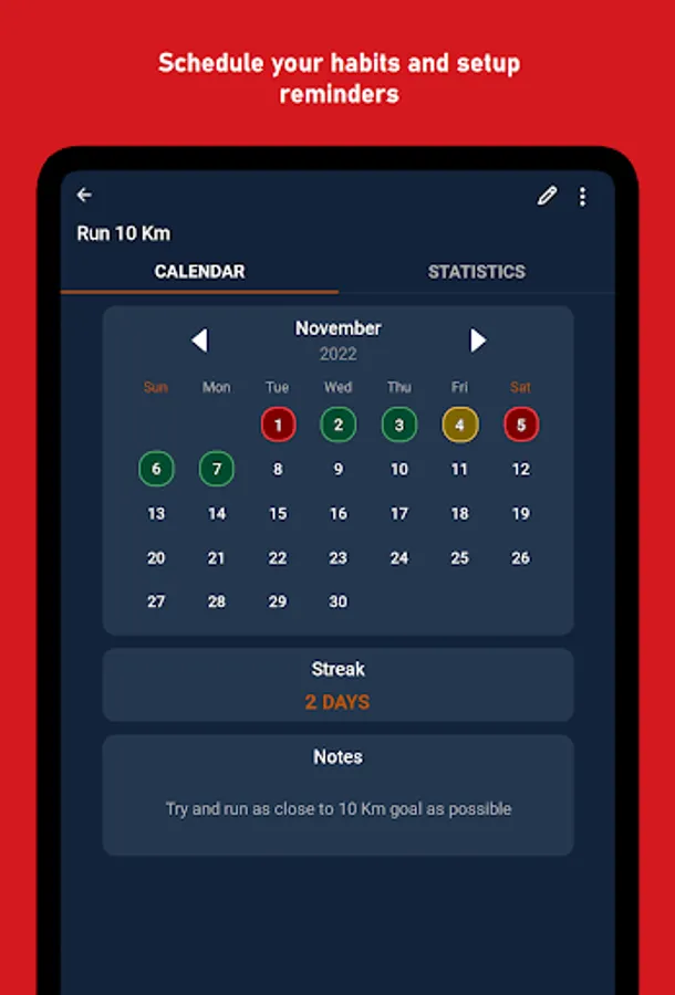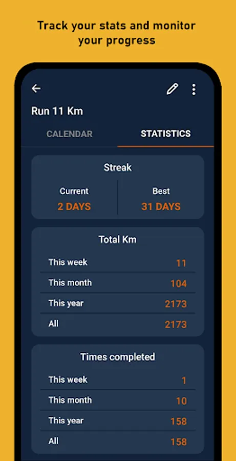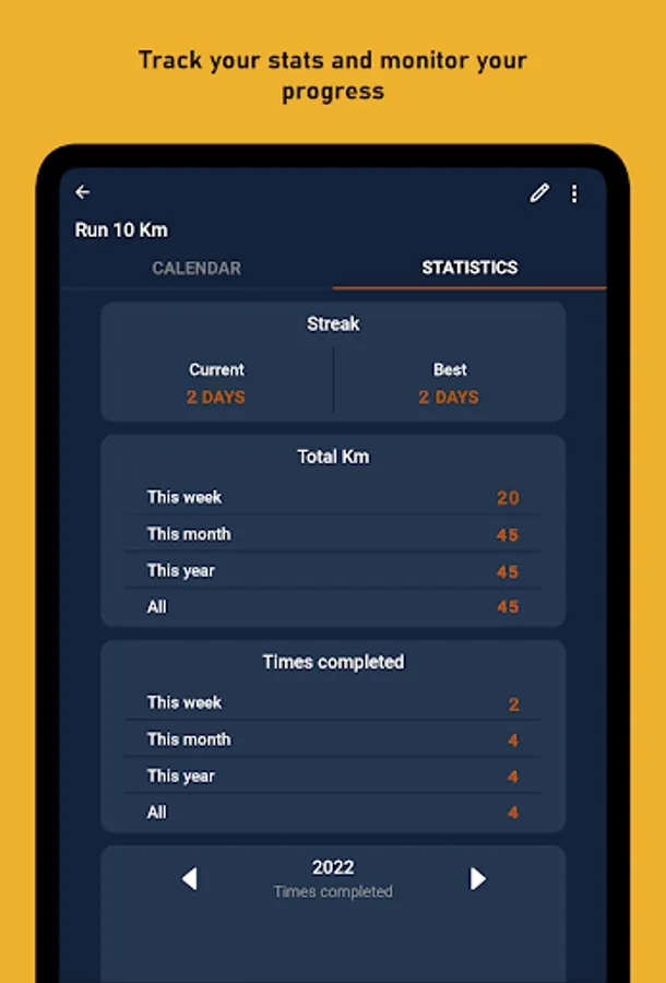 Track your progress over time with detailed, intuitive and useful charts and statistics on every habit that you record, including streaks, grand totals, and the entire history of your completions.