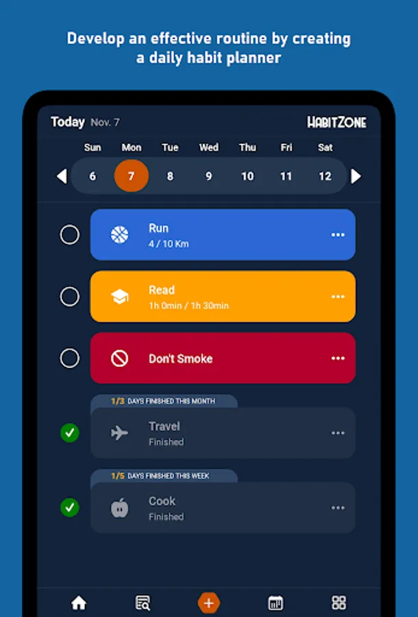 Do you find it difficult to develop good habits or break bad ones? By providing you with a new, simple, and motivating habit-building experience, HabitZone will assist your in organizing your life! A happy, healthy and productive lifestyle will no longer be a dream with the help of this habit tracker app.
