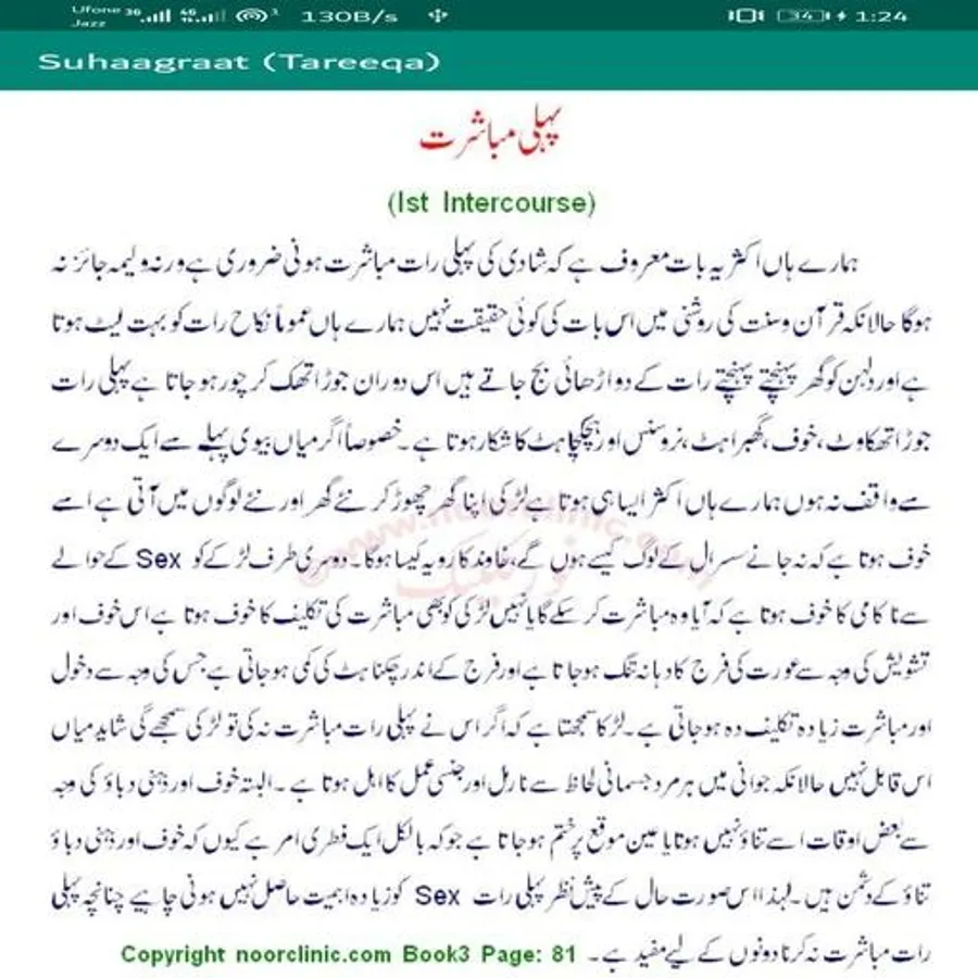 Shadi ki raat ki mukammal tafseel Quran or Hadith ki roshni me es kitab me majood ha. Es ko Parhain or estafada hasil krain.