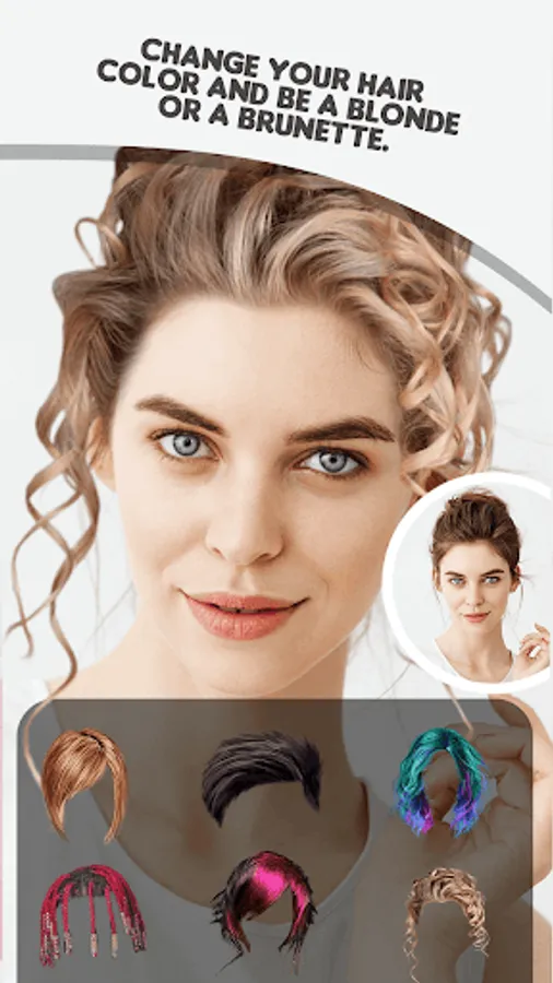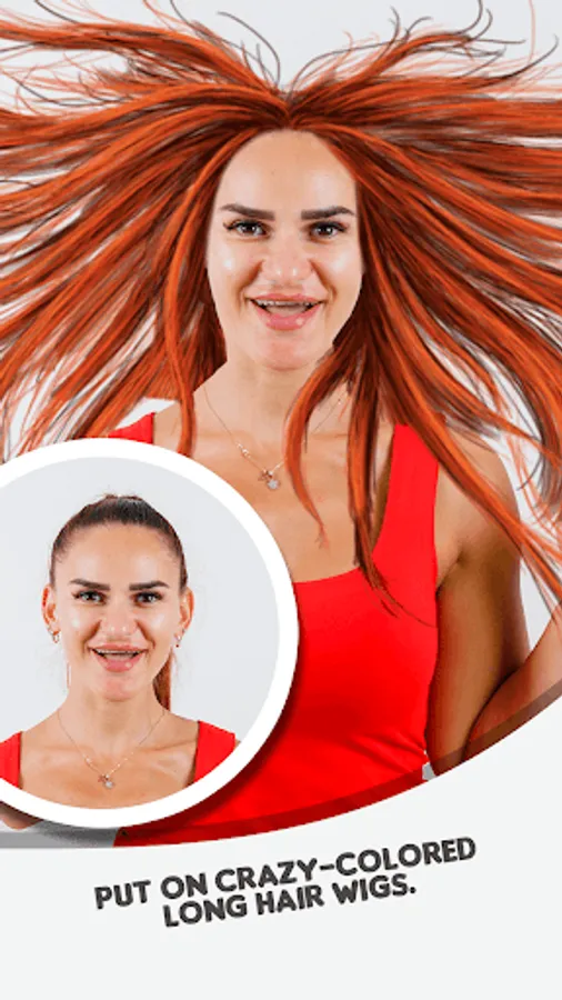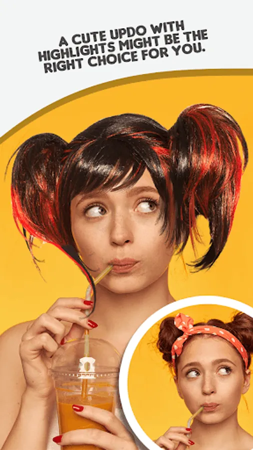 Stop asking yourself how would I look with different hairstyles! Dare to change hair style! The hair styler and selfie editor is here to change your looks! Maybe you've always wanted to wear the fringe or color ombre highlights? Instead of trying on wigs, you can now try on hair colors to your picture! Edit any selfie you have, or take new selfies with our wig hair changer camera and later apply woman wig stickers to it. Give yourself a fashion makeover with a mod cut, pigtails, or curly half updo stickers. Find the wig style that suits you best in the hair changer for women!