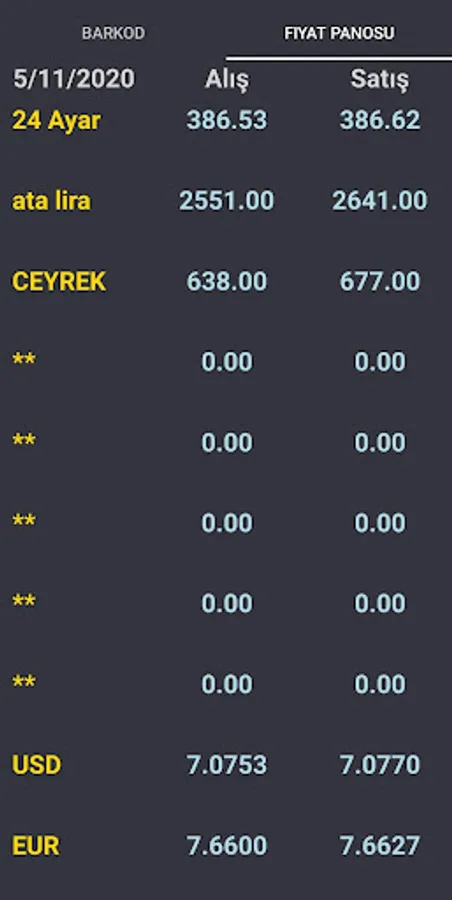 Fiyat Panosu - Altın Fiyatları