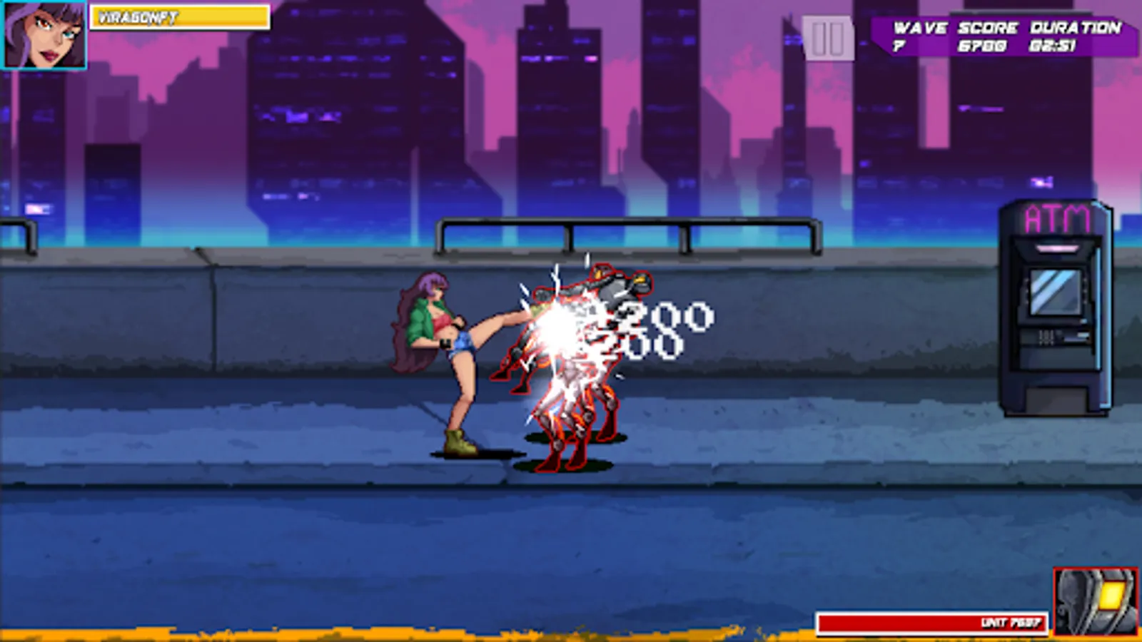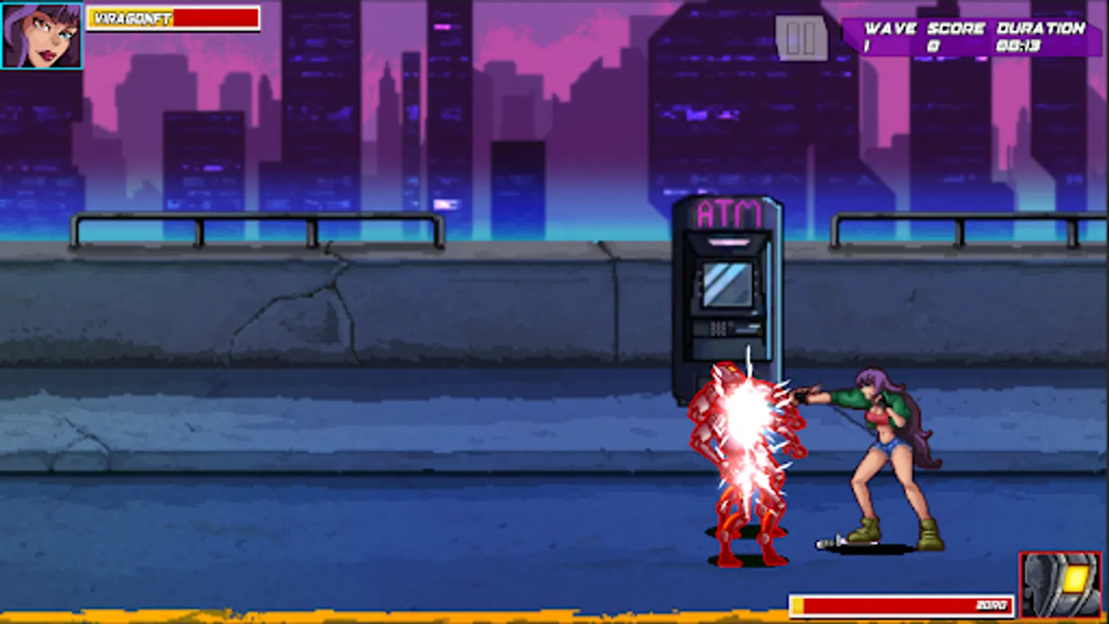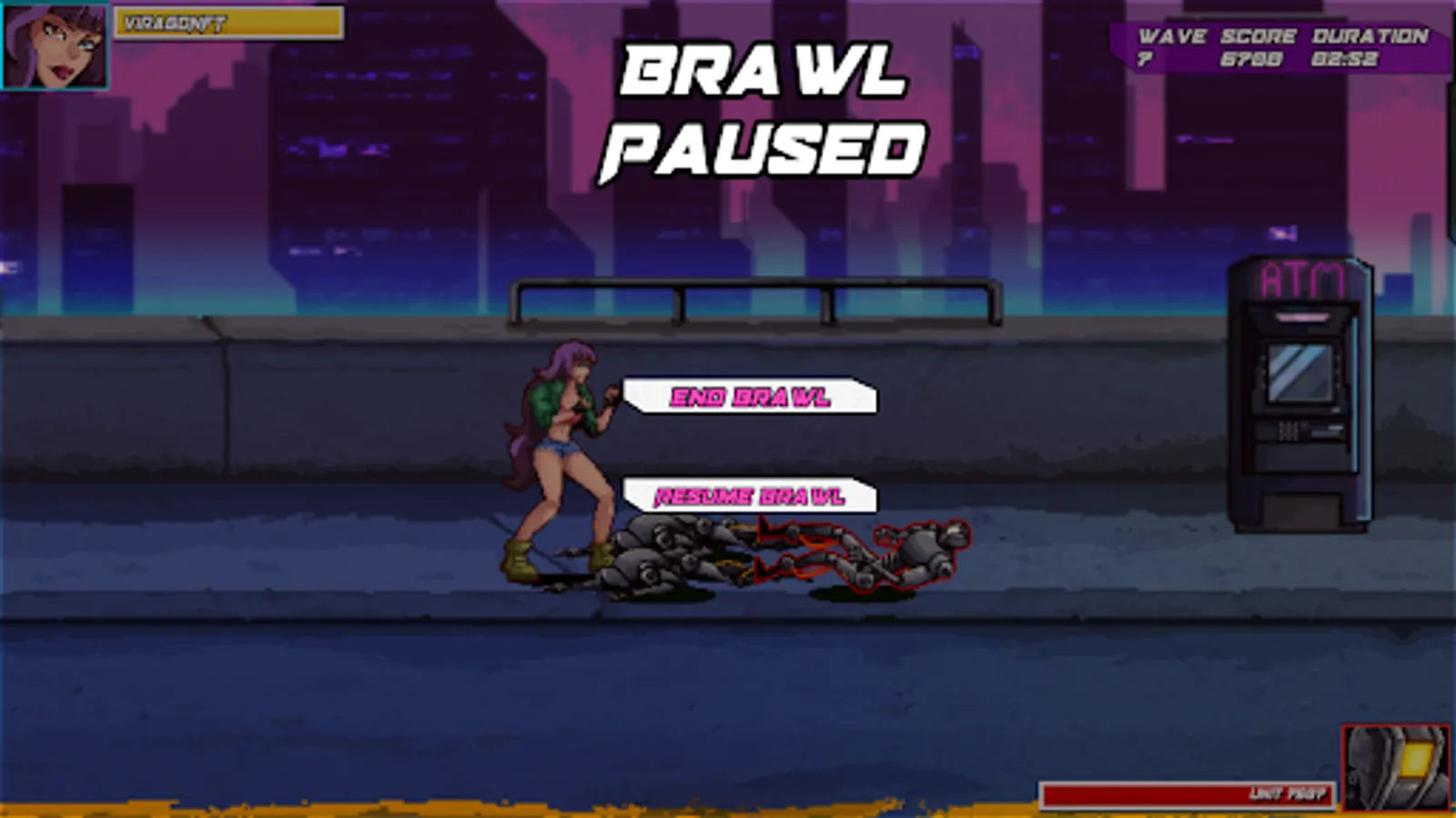 From the creators of the ViragoNFT Collection comes Virago: Street Brawl. Where we play as a Legendary Virago, Aliz, as she fights through waves of Robot enemies. Fight your way through the streets of the Viragoverse, see actual web3 projects on the billboards, and climb the leaderboard!