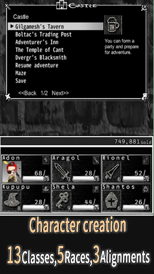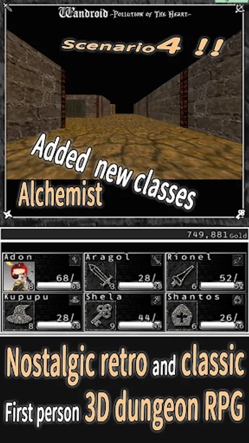 A 3D dungeon RPG with an old-fashioned retro and classic screen design and UI.