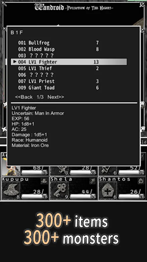 Over 300 types of monsters, over 300 types of items