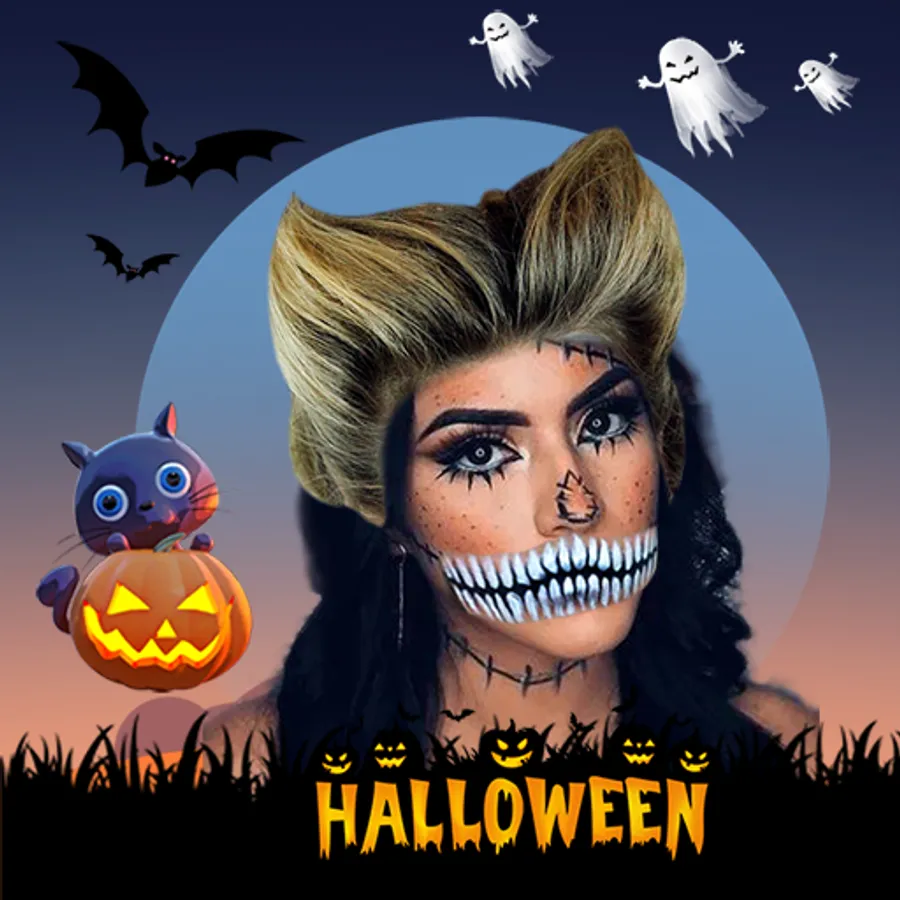 Hay! Happy Halloween 2023& Welcome to Halloween makeup photo editor contains Look! Witch, Zombie, vampire, alien, spider, ghosts and werewolf!