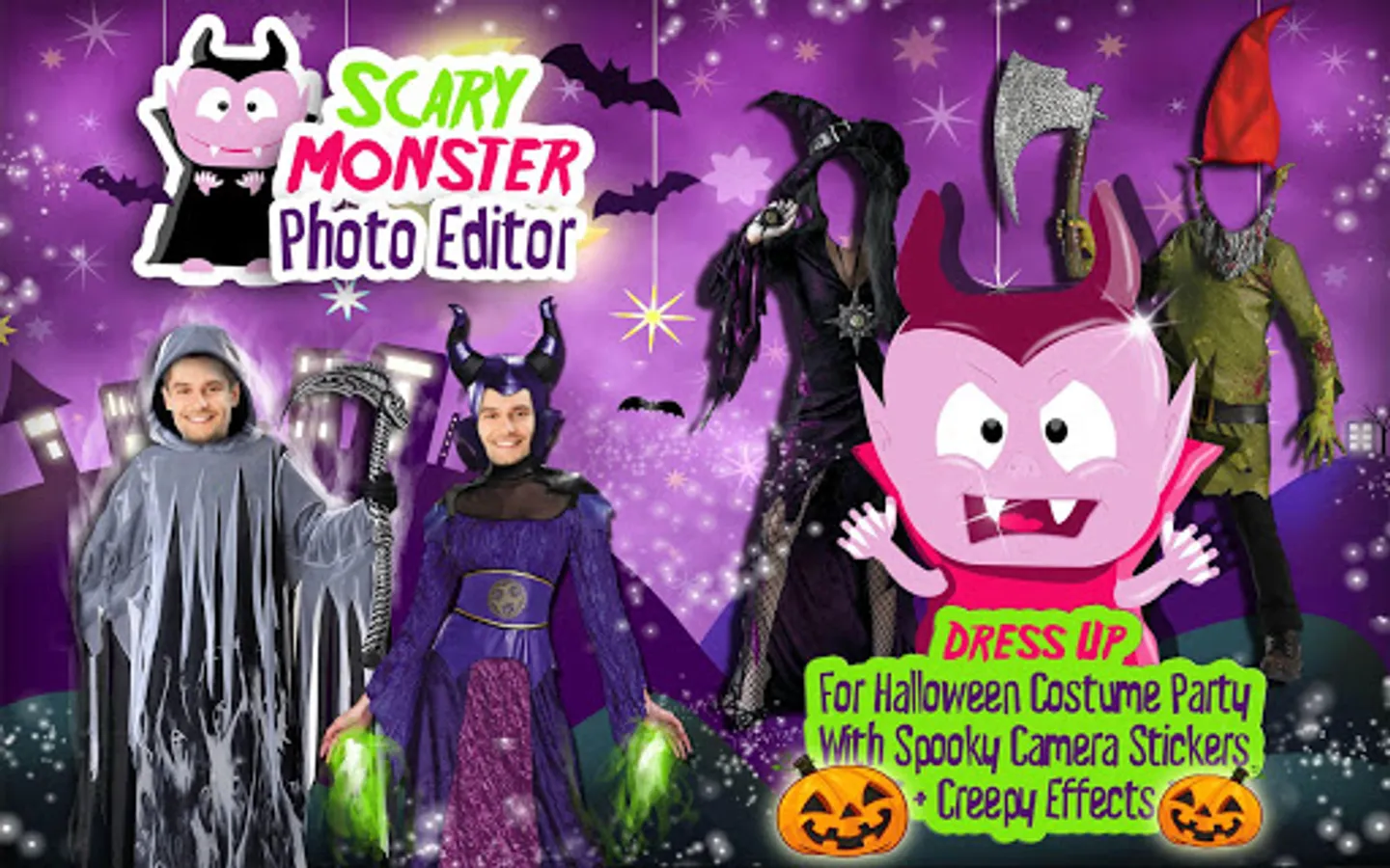 Halloween is near! We all need to download some type of creepy picture editor and use the scary selfie camera to celebrate that day. Choose “Halloween costumes” in this creepy photo editor that will make your edited pictures look cool and scary. There is a great choice of many costumes It's also a spooky photo editor for people who like Halloween masks. If you are a fan of Halloween costumes, you will love this beautiful Halloween photo montage with scary edit photo. The app is called Halloween Photo Editor - Scary Costumes and it is a “scary photo editor” for your beautiful selfies. Download this scary photo maker if you wish to have the Halloween photo editor . Just make funny selfies and create amazing photo montages. Use costume photo editor app for pictures and enjoy photoediting. “Halloween Photo Editor” - “Scary Costumes” is a Halloween pic editor that you will love.