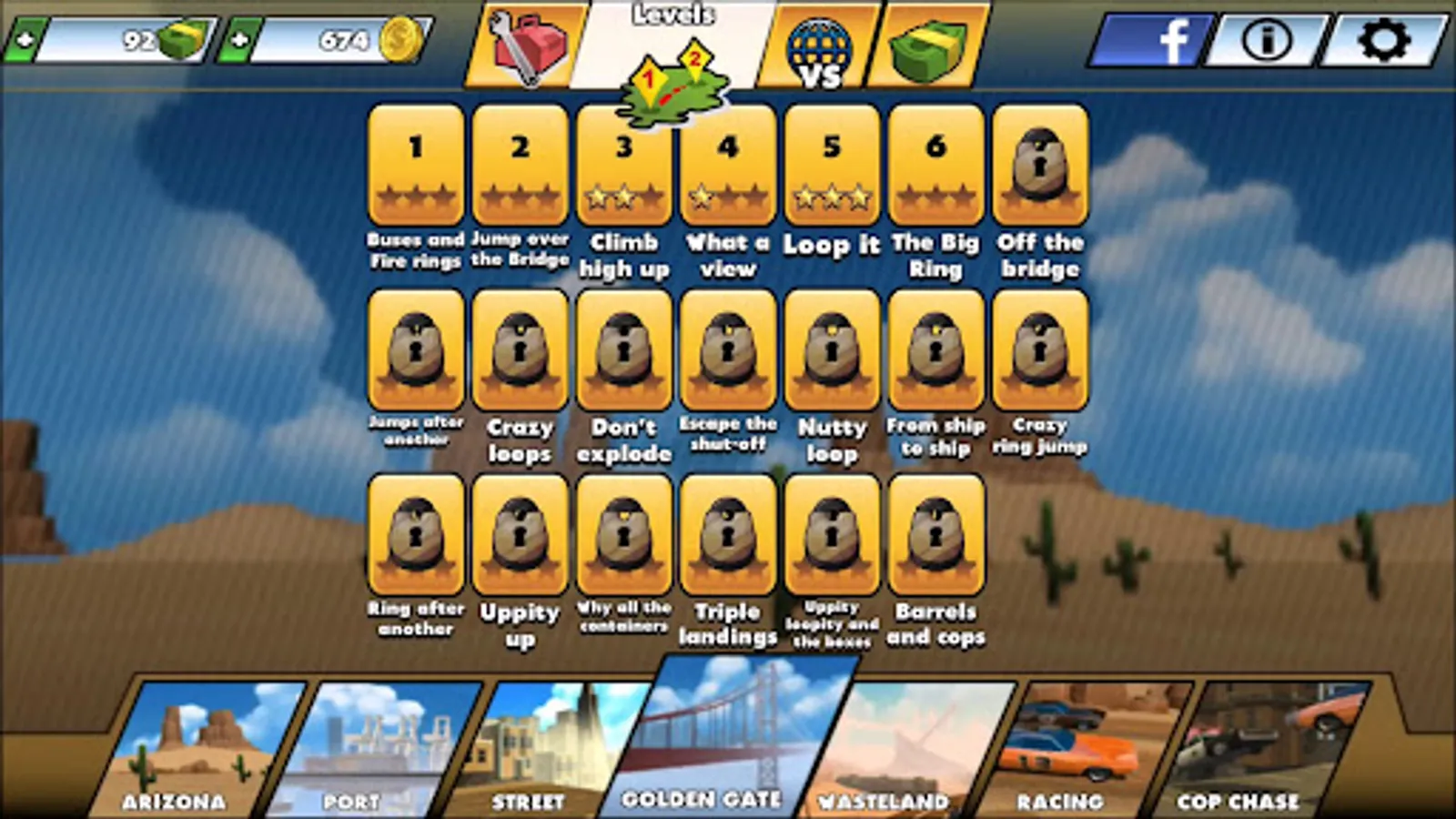 Don't think about it EVER AGAIN!!! Now you can do CAR RAMP RACING GAMES in different locations such as Arizona, Golden Gate Bridge, Wasteland, Port and Street. So, what are you WAITING FOR??? Download Mega Ramp - Real Mega Ramp game now and start your very own car stunt.