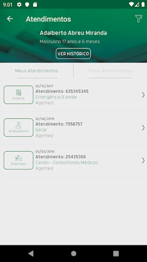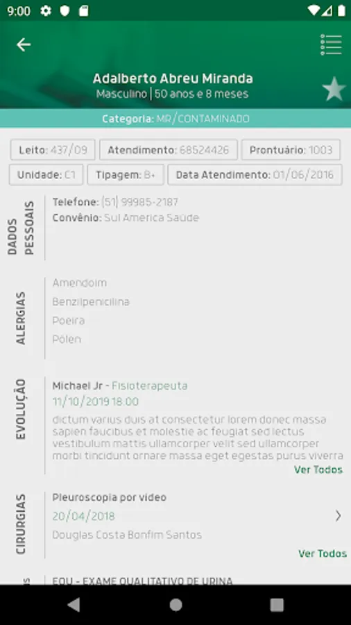 The application synchronizes the data of the hospital system in real time making available to the query of the logged in user.