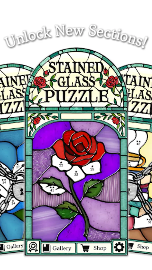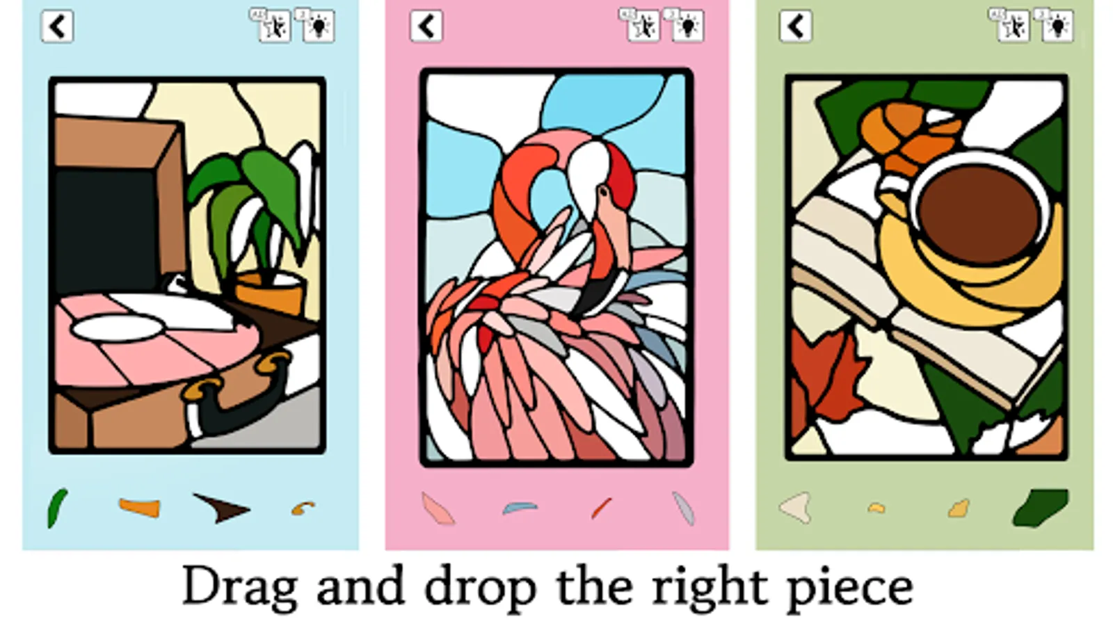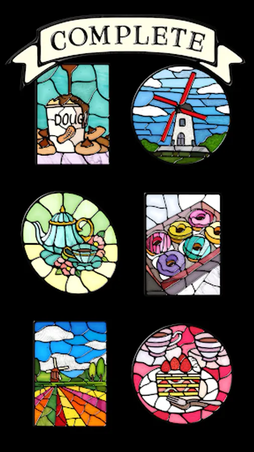 Puzzles turn into beautiful stained glass when you complete the puzzles.