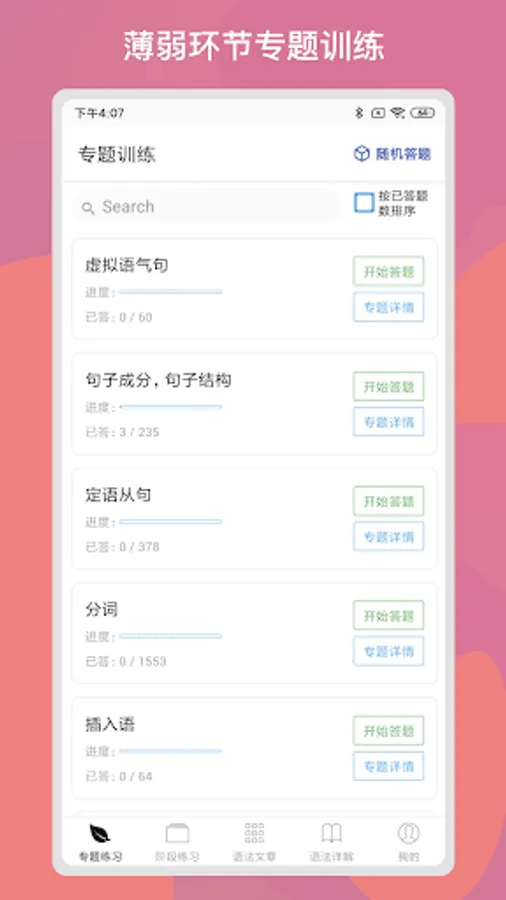The APP contains a large number of special training topics, and provides special training for weak links to provide comprehensive capabilities.