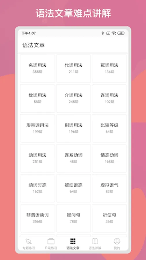 Grammar is an important part of English learning, and it is also a difficult point in English learning. The mastery of grammatical knowledge not only helps to improve the accuracy of language expression, but also helps to improve language expression and oral ability.