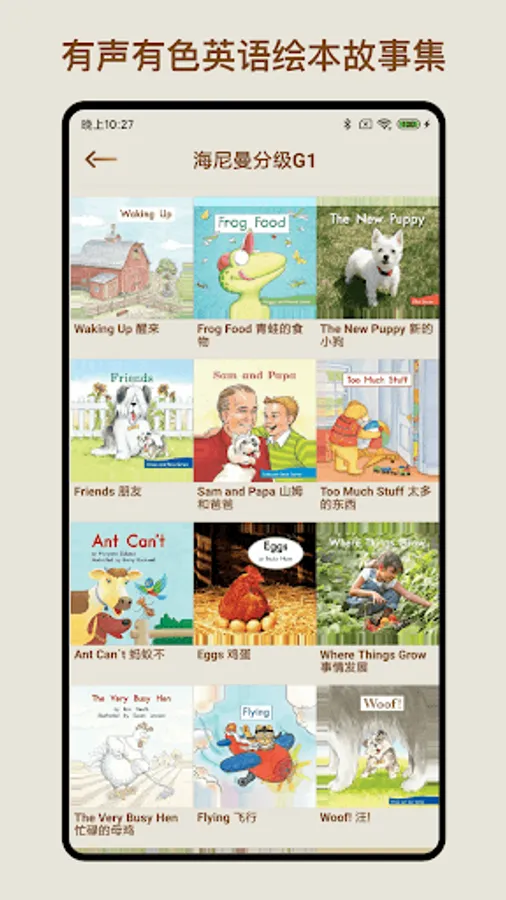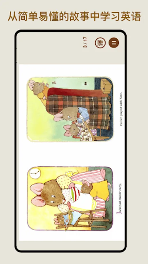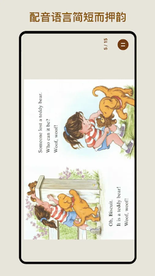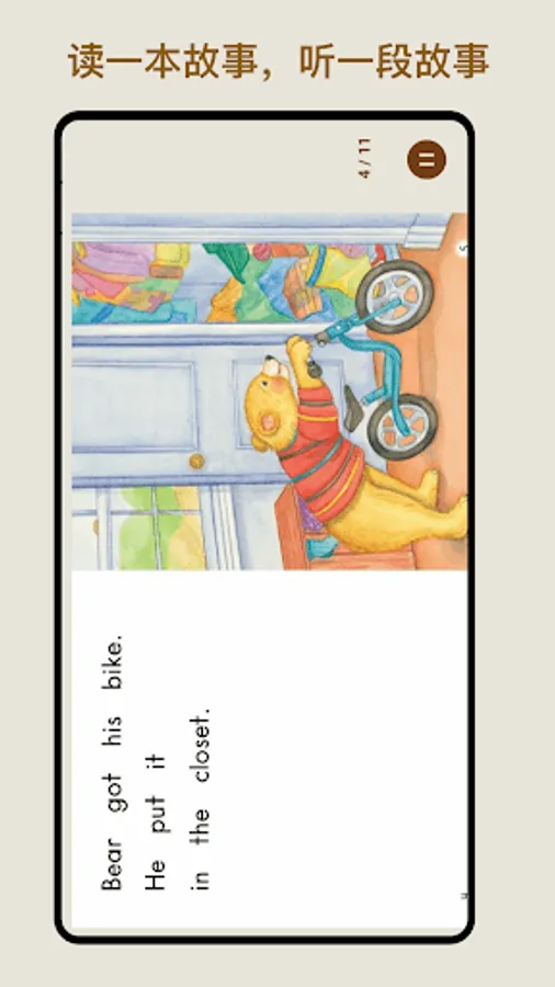 Add singing version, follow-up version, children's voice version, accompaniment version, and reading version English dubbing to the interesting picture book reading, using a beautiful form of expression like picture books, the language is short and rhyming, and the repetition is easy to remember. While reading picture books, you can also learn languages, so you can get double the gains.