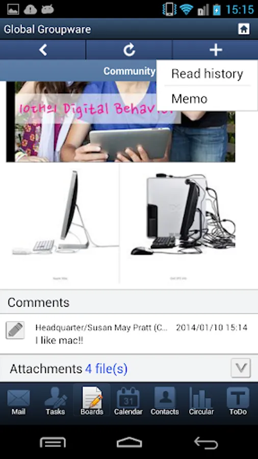 With Boards, you can use this function for company announcements, free board or make a spot for information sharing.