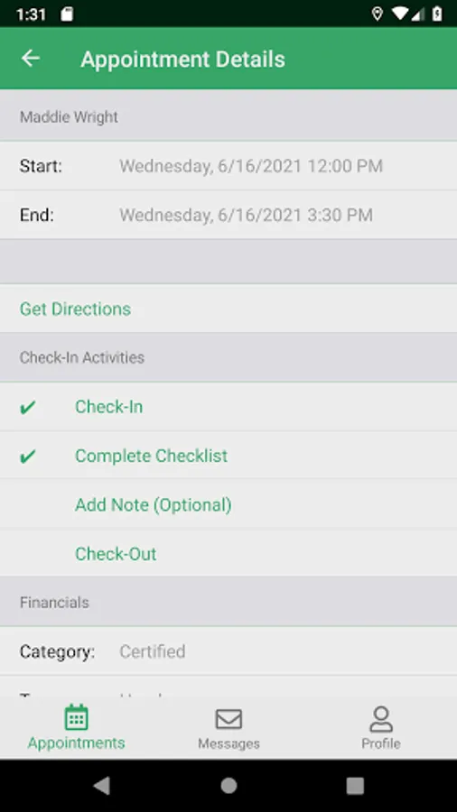 - Check-in and check-out of appointments using geolocation