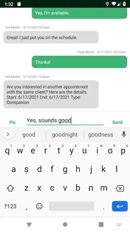 - View upcoming schedule and get details on appointments