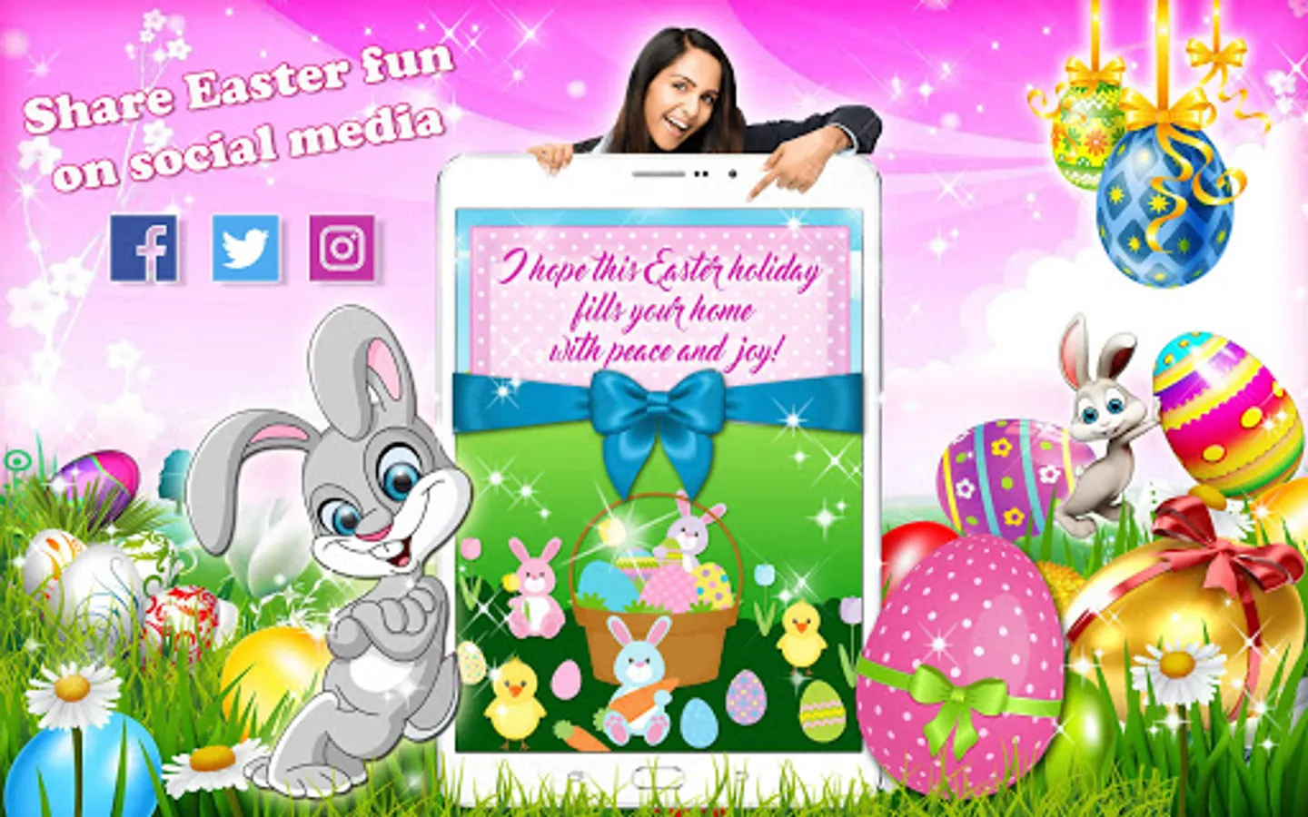 Holiday cards are the way to express our love! Easter cards will give you a fun and beautiful way to speed up the Easter countdown with invitation card maker. These happy Easter cards contain Easter photos, and you will be able to add text to pictures. Easter apps are cool and Easter photo apps are the ! Download this cool and cute app, send e cards and dress in Easter bunny costume. It is a time to celebrate for it is the day our Lord savior Jesus Christ was resurrected. This is the reason for many to rejoice in celebration, play Easter egg hunt games and expect a call from the Easter bunny. This cool and beautiful app called “Happy Easter Wishes” - “Holiday Greeting Cards” is also an Easter wallpaper app. You can set your ecards as a background to your screen and enjoy the Easter spirit. Easter holidays are a fun time of the year Easter day is the . Download “holiday greeting cards” and expect an Easter bunny call anytime soon. Easter cards and happy Easter images are sent together with Easter messages, Easter wishes and Easter greetings. In order to have all of the ecards, download this cool and beautiful app. Enjoy Happy Easter Wishes - Holiday Greeting Cards and its Easter eggs and Easter bunny pictures. There are a lot of cute wishes and greetings out there and some people can think of very beautiful wishes for all festivals and greeting cards all occasions .