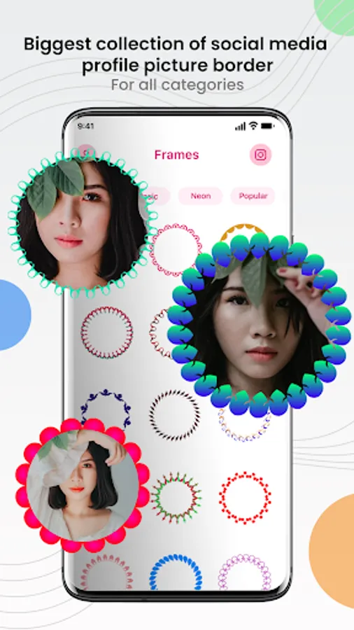 - This app has a wide variety of ultra-cool profile frames to provide your social media profiles a spectacular look with free border, frame, and DP maker options.