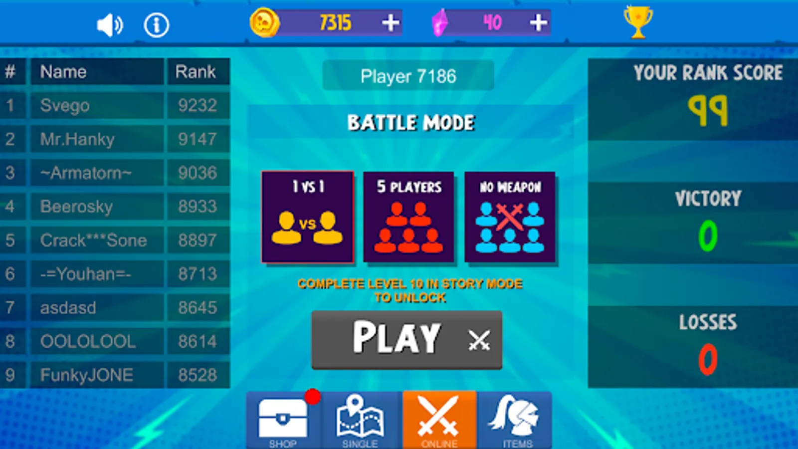 Ragdoll Hero Battle Playground is the ultimate fusion of hero battles and ragdoll physics fun! Engage in epic battles as stickman heroes in a pixelated playground where legends are forged. Craft your unique weapon, choosing from various warriors, and embark on a thrilling journey through battles, showdowns, and legendary challenges.