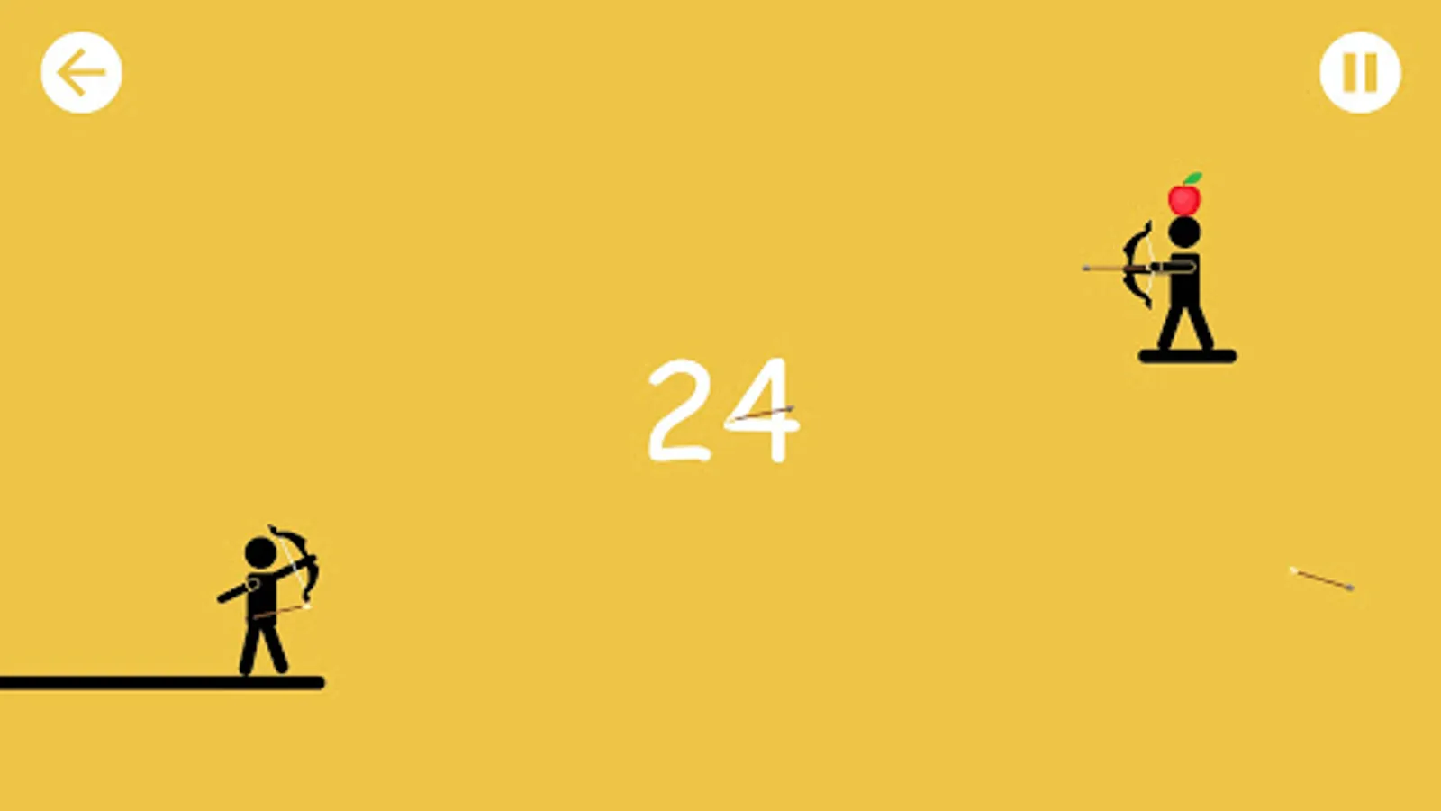 You need to defeat as many enemy stickman as you can by your bow before they kill you. The enemy stickmen is killed by two hits in the torso or one headshot. Hit apple and you restore one health point.