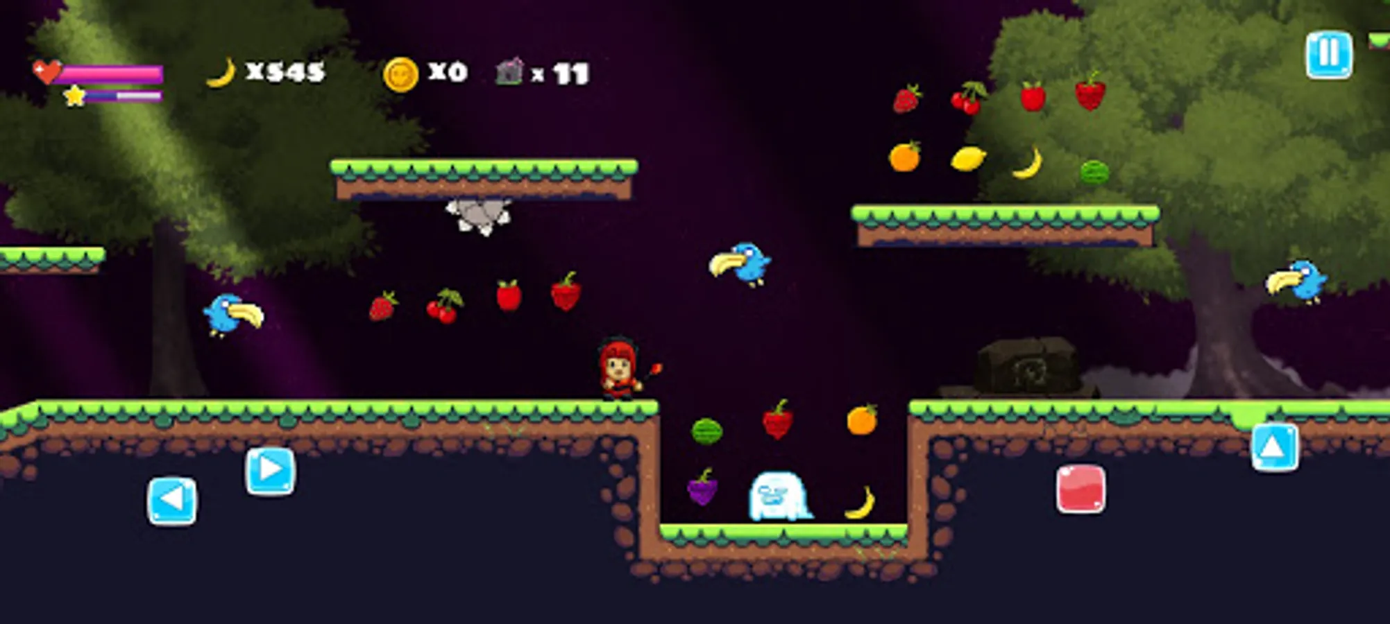 Show your skills by completing levels and be the hero! Collect all the Friuts and use them for power ups to gain lives, health and much more. You will face many enemies on your way to complete your mission, so get ready for an epic adventure!