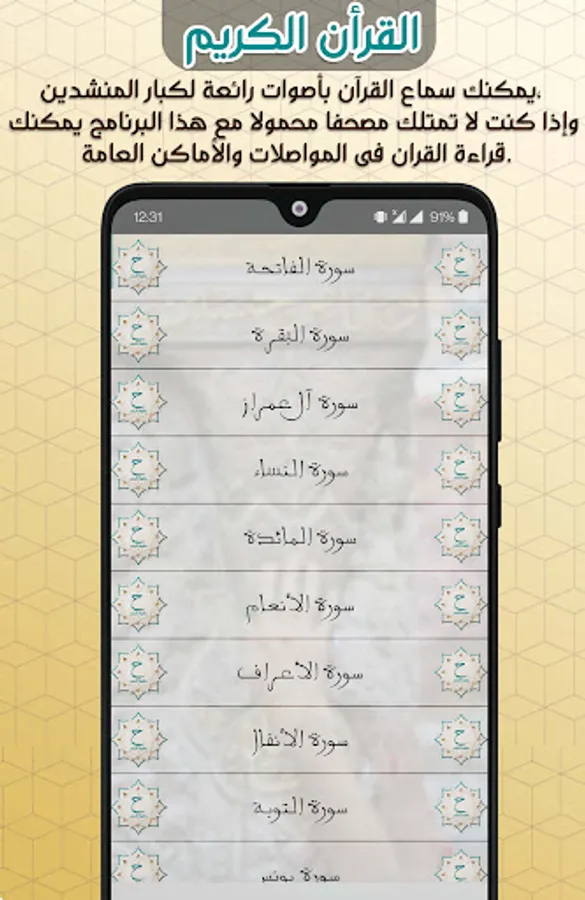 - The Holy Qur’an: The mobile wallet program contains a comprehensive Quran for all the surahs The Noble Qur’an and the meanings of some words, as well as you can hear the Qur’an in wonderful voices for senior singers, and if you do not have a Qur’an with this program, you can read the Qur’an in transportation and public places.