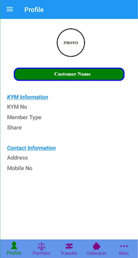 This is a financial App. This App contains the KYM Balance report, Statement View, final reports like Trial Balance, Balance Sheet etc. It also contains the fund transfer and Collector collection within the Co Operative only.