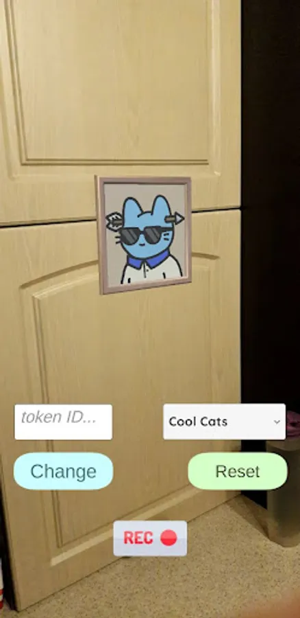 Just choose NFT collection, pick picture by token id and place your AR frame on the wall. Top NFT projects like Azuki, Cool cats etc.