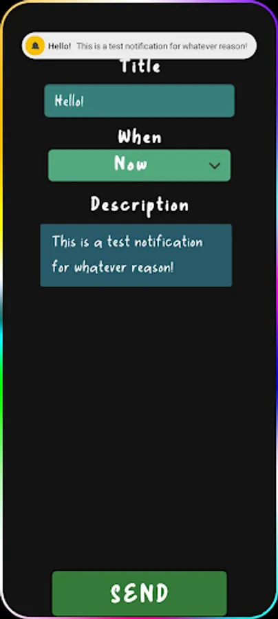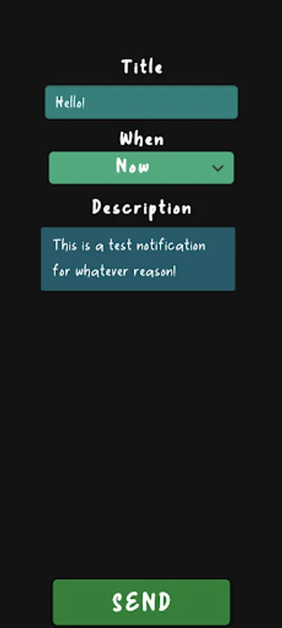 You have the ability to send a custom notification with a custom title and description at the press of a button!